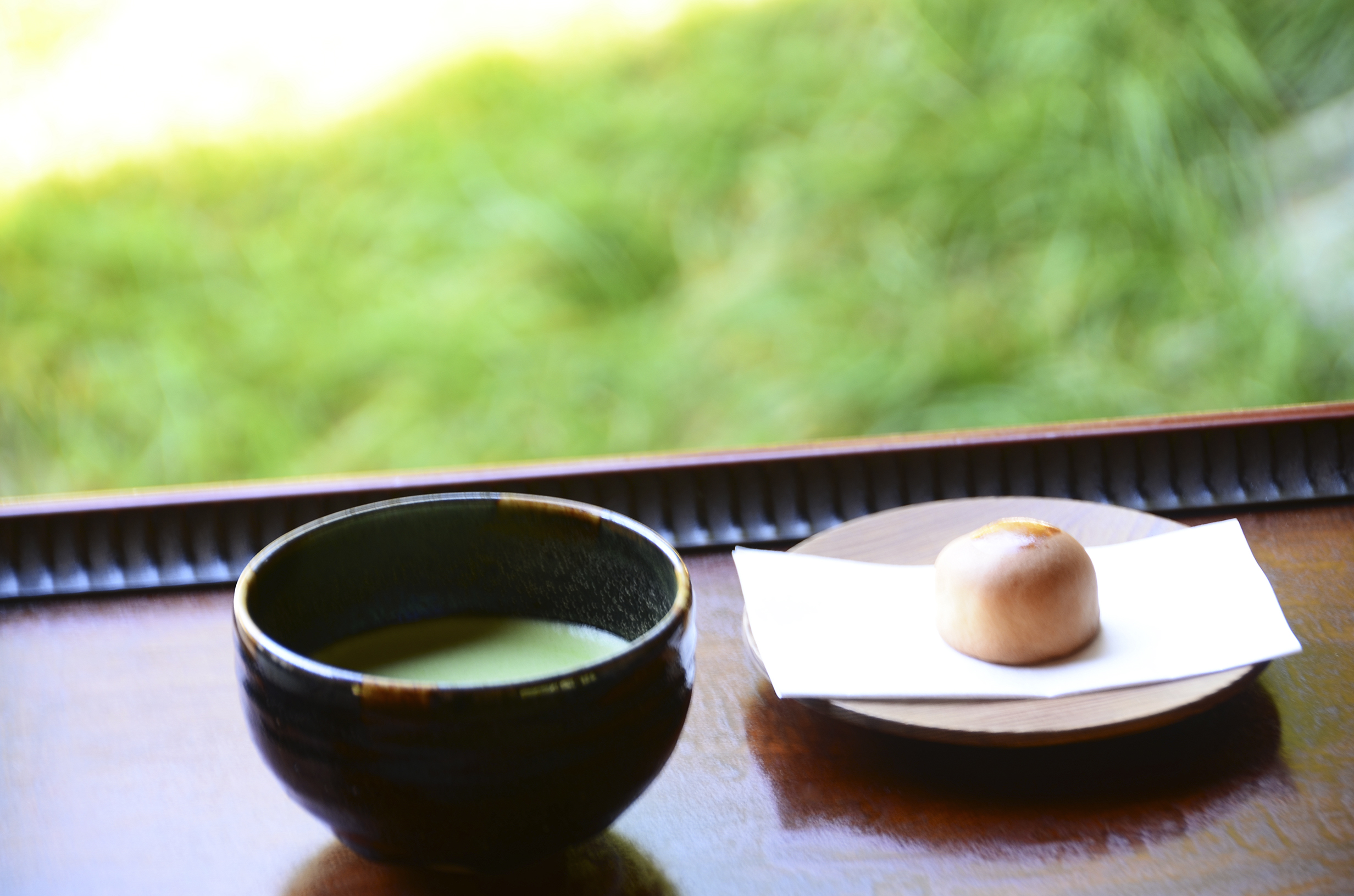 木造建築のもつ伝統技術を現代にいかした数奇屋建築のお茶室で季節の室礼とお抹茶をお楽しみください。お菓子は当館特注の和菓子「千代の珠」「すずし」(夏季限定)をおめしあがりいただけます。 |