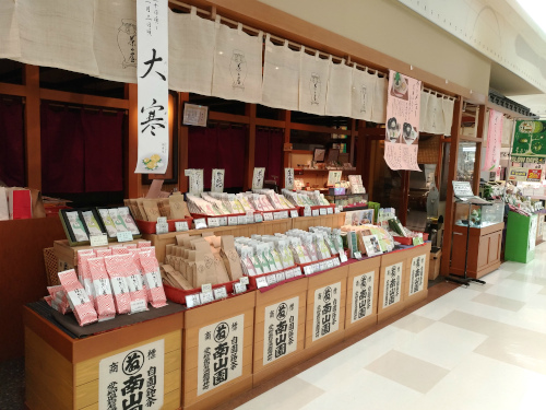 抹茶、玉露、煎茶、ほうじ茶など数多くの種類のお茶と季節の茶菓子を取り揃え、日常使いだけでなく、季節のご挨拶・お祝い等のギフトや仏事の御供・香典返し等を提案させていただいております。また、お買い物の一休みにくつろいでいただけるように、店内の奥に喫茶のスペースを設け、自慢のお茶と伝統製法で作られた品質の良い抹茶やほうじ茶を使った美味しい甘味をご用意しております。どうぞお気軽にお越しくださいませ。※WEBからのお問い合わせは(株)南山園ホームページの問い合わせフォームよりお問い合せ下さい。 |